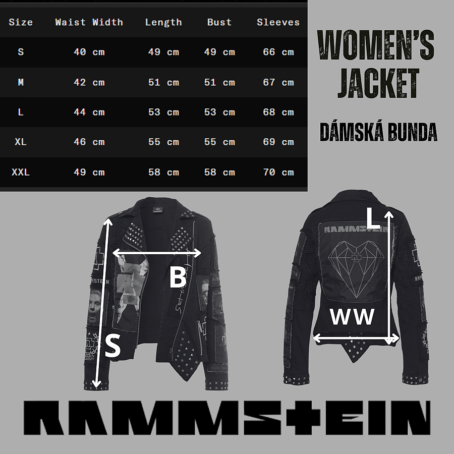 Rammstein kurtka, Metal Patches Zip BP Black, damska
