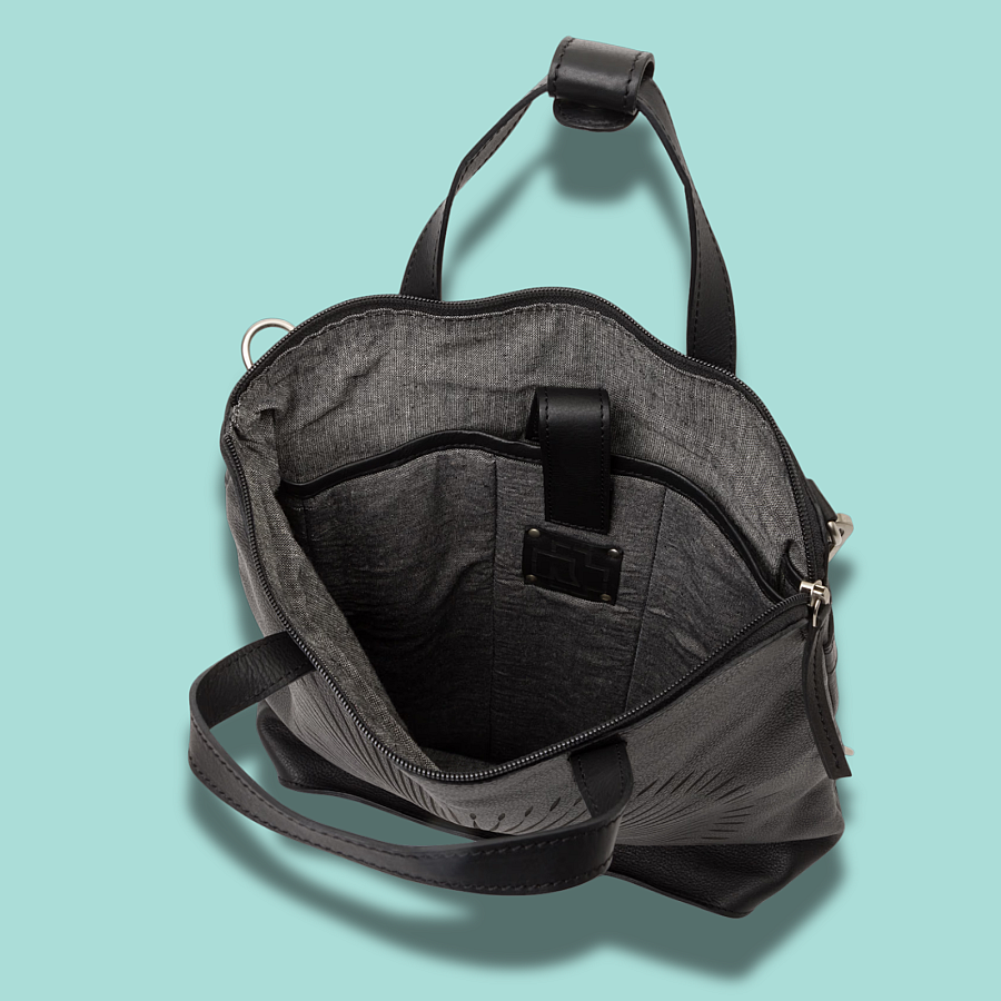 Można nosić jako plecak, torbę na zakupy z krótką rączką lub jako torbę crossbody z długim paskiem na ramię.