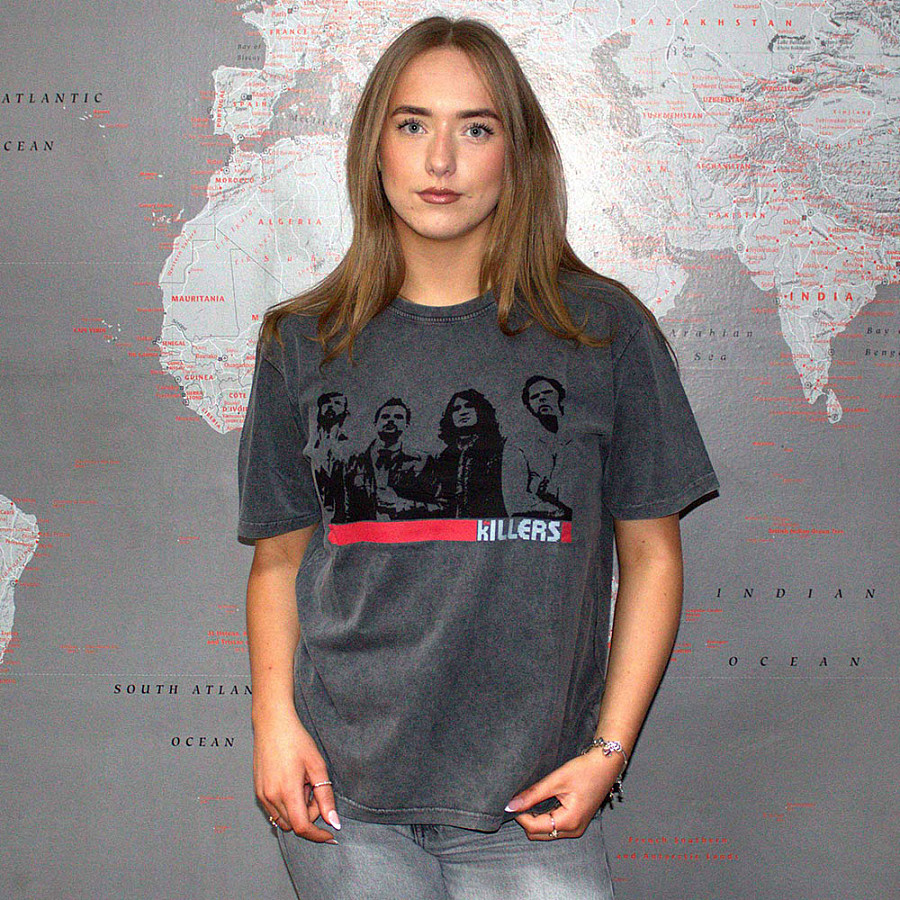 Popis: The Killers koszulka, Band Photo Mono Stone Wash Charcoal Grey, męskie